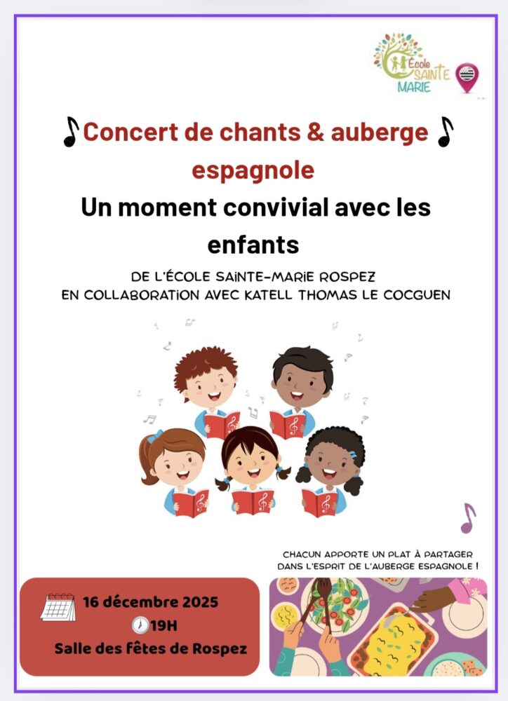 mardi 16 décembre (19h): spectacle de chants et auberge espagnole à la salle des fêtes