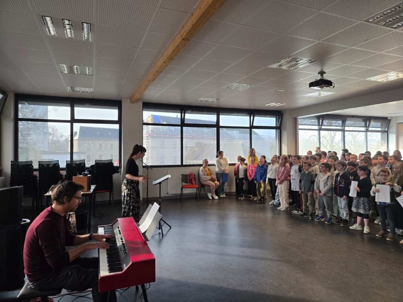 Ce mardi 24 mars les Ă©lèves ont eu leur première rĂ©pĂ©tition de ChĹ“ur d’Ă©cole avec les Ă©coles de Kermaria Sulard, Pleumeur Bodou, Plouaret au collège de Saint Joseph.