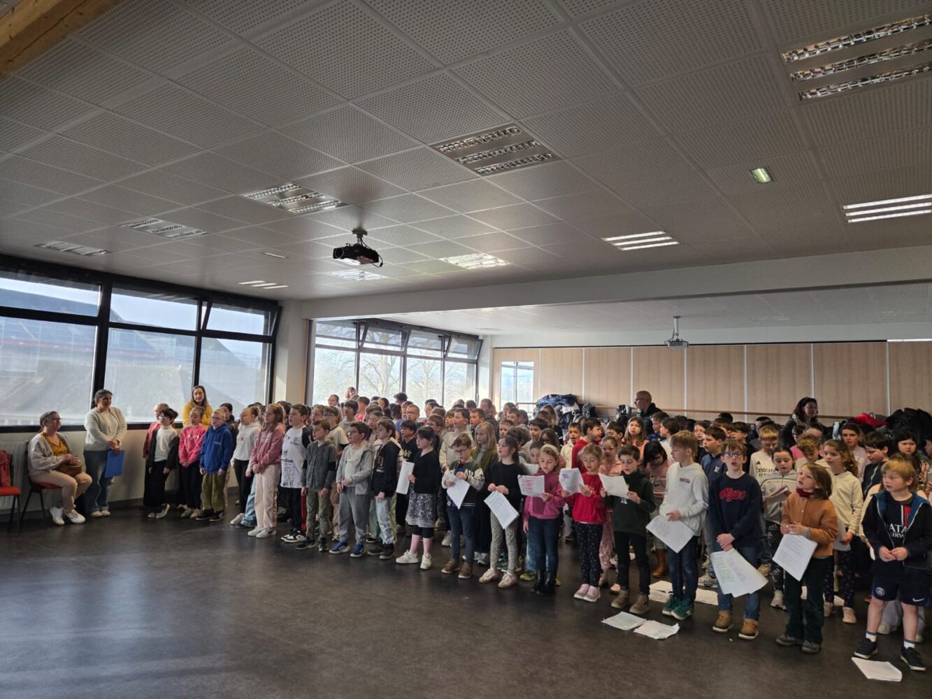 Ce mardi 24 mars les Ă©lèves ont eu leur première rĂ©pĂ©tition de ChĹ“ur d’Ă©cole avec les Ă©coles de Kermaria Sulard, Pleumeur Bodou, Plouaret au collège de Saint Joseph.