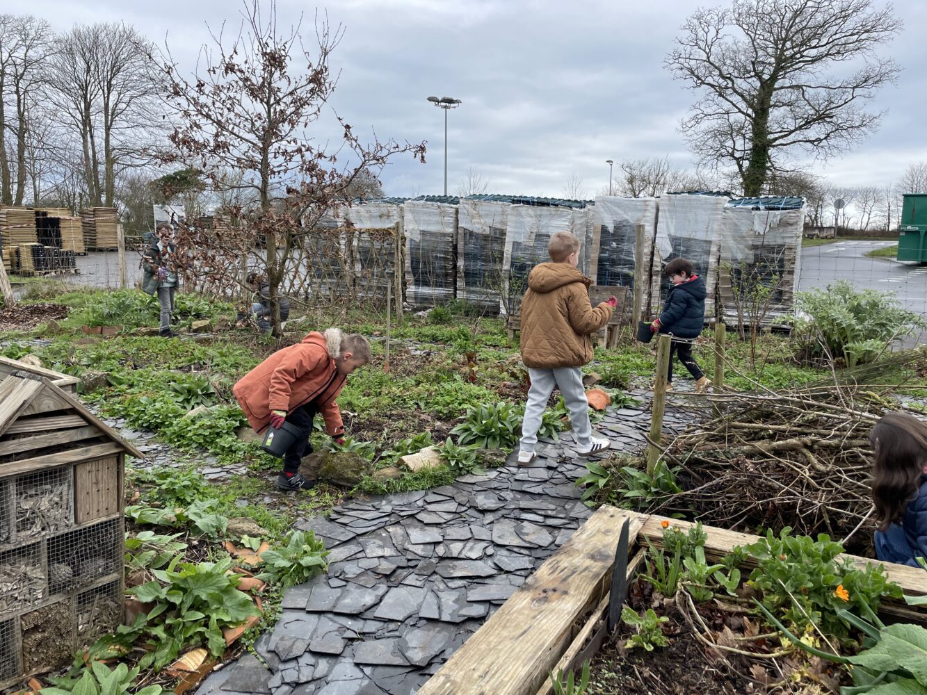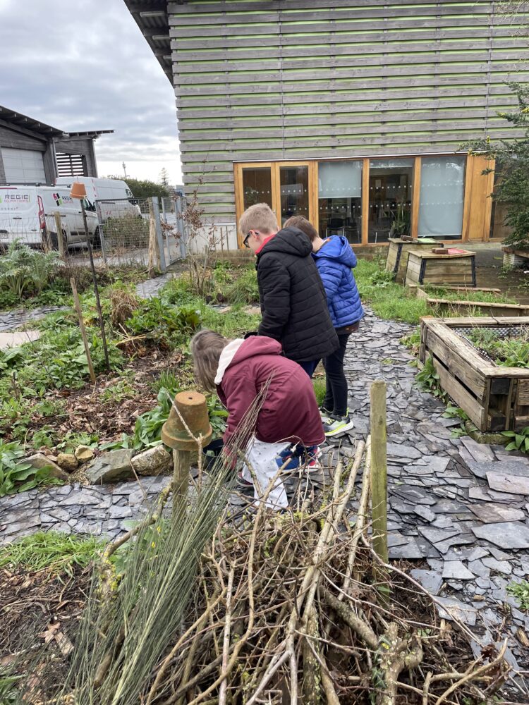 - Avec une personne de la régie de quartier, ils ont fait un tour dans le petit jardin pour récolter de la matière brune (feuilles mortes, bois) et de la matière verte (feuilles, herbe) pour préparer un lombricomposteur (méthode de compostage d’intérieur qui repose sur l’action des vers de terre pour décomposer les déchets organiques) que nous avons rapporté à l’école.