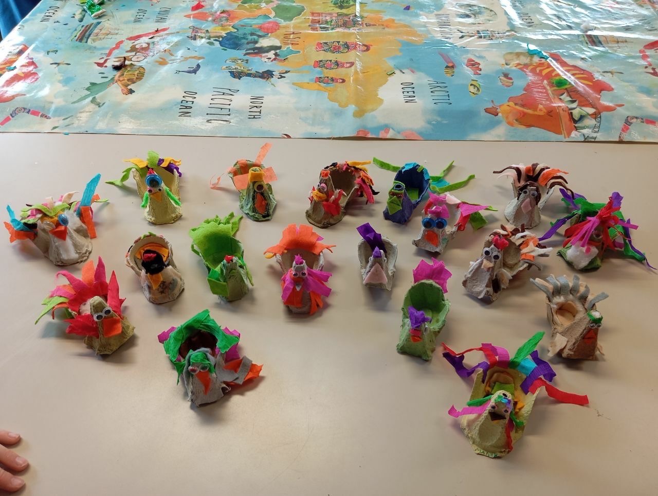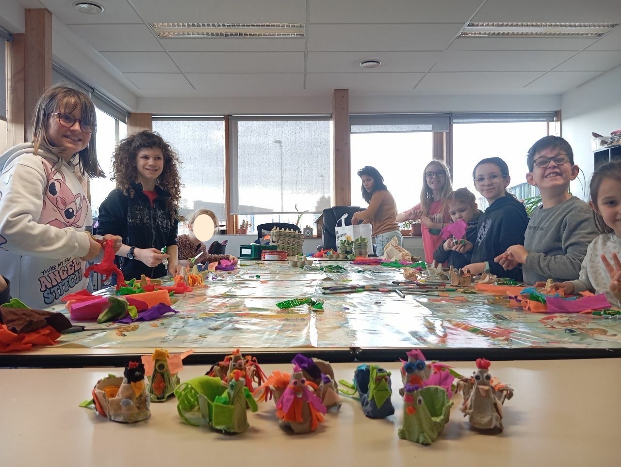 - Avec une animatrice de Valorys, les enfants ont confectionné une petite poule en matériaux de récupération.